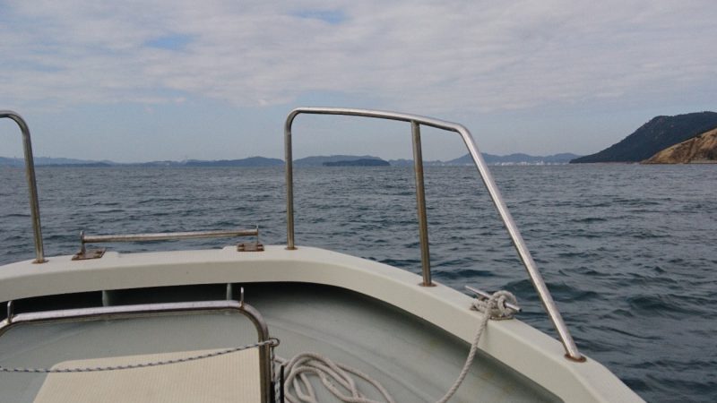 出発して約15分、くじら島が見えてきました。まだまだ遠いです。
