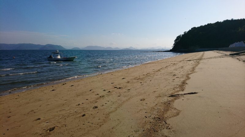 船を降り砂浜から階段を上ってすぐの場所にあるのが、海を見渡せるバーベキュー会場です。宇野港出発時点は曇り空でしたが、くじら島上陸時には天候にも恵まれ、バーベキュー日和の快晴でした。