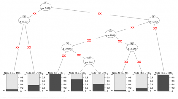 その後、私は意思決定ツリーを作成し、全く同じ尺度が最も強力な解約予測の判断材料であるように見えました。顧客の統計データにはさまざまなベンチマークがありますが、ダッシュボード利用の割合がデータ準備の割合を「上回らない」場合は、赤いフラグを立てる必要があるということを私は実証しました。成功です!